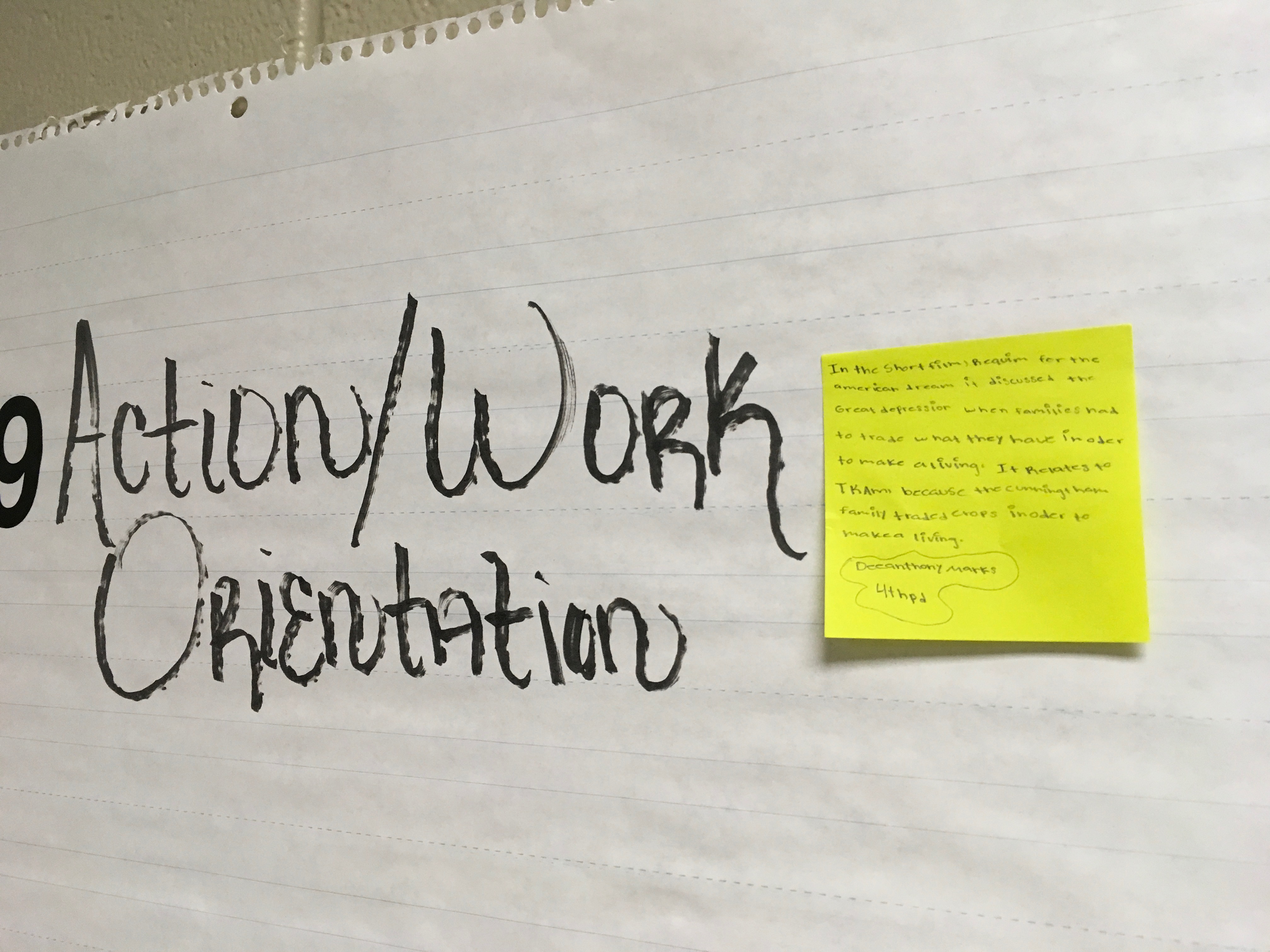 You will need to conduct four concrete examples for at least 3 different values. You will need to give concrete examples on your green sticky notes. Put your name on at the bottom of your statement and class period. You must use two examples, one connected to your book, To Kill a Mockingbird and the other to the short film, Requiem for the American Dream.
